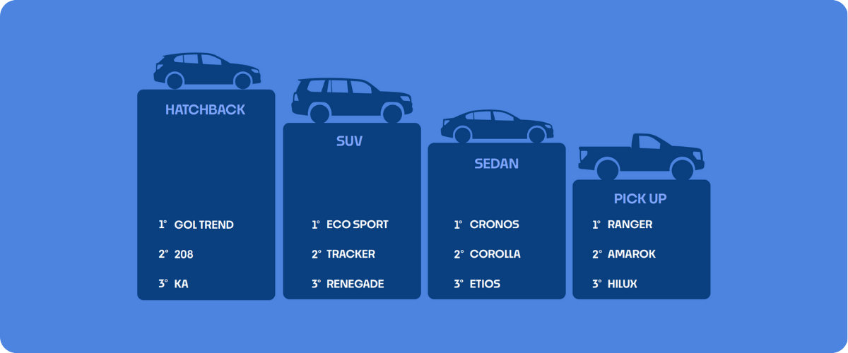 📌¿Cuáles son los 3 modelos más comprados en Kavak según tipo de auto? |